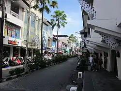 Kuta (Balinese: ᬓᬸᬢ/ᬓᬹᬝ) is a tourist area, administratively an urban village (kelurahan), and the capital of Kuta District, Badung Regency, southern Bali, Indonesia. Kuta is a part of the Denpasar metropolitan area, 12 km (7.5 mi) south of downtown Denpasar. Originally known as a fishing village, it was one of the first towns on Bali to see substantial tourism, and as a beach resort remains one of Indonesia's major tourist destinations. It is known internationally for its long sandy beach, varied accommodations, restaurants and bars, and many renowned surfers who visit from Australia. It is near Bali's Ngurah Rai Airport.