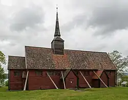 The earliest existing historical records of the church date back to the year 1400, but the stave church was probably built during the early-14th century. The church is a single-nave church of the "Møre"-type, characterized by central posts in the external wall and crossbeams. The small nave measures only 16 by 7.5 metres (52 by 25 ft) and the choir is only 7 by 7.5 metres (23 by 25 ft), making it one of the smallest stave churches in existence. The church was rebuilt in 1633 and during this renovation the front door was moved from the nave's west side to the south side. Also during this renovation, the old choir was torn down and rebuilt in a timber-framed construction rather than the historic stave construction. In 1648, the tower on the roof was repaired. From 1661 to 1663, a church porch was constructed. A sacristy was built around 1689 as well. In 1776, the church was renovated again. In 1810, the tower on the roof was again repaired.[4][5][6]