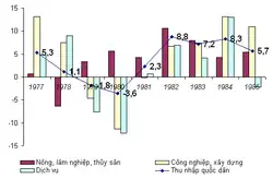 With regard to heavy industry, the leadership's position was muddled. In his Fourth Political Report Lê Duẩn stated that during the transition to socialism, priority would be given to heavy industry "on the basis of developing agriculture and light industry". In another section of the report, Lê Duẩn stated that light industry would be prioritised ahead of heavy industry. The position of Phạm Văn Đồng, the Chairman of the Council of Ministers (the head of government), was just as confused as Lê Duẩn's.[55] In practice Lê Duẩn prioritised heavy industry: 21.4% of state investment was in heavy industry in the Second Five-Year Plan and 29.7 percent in the Third Five-Year Plan (1981–85). Light industry only received 10.5 and 11.5, respectively.[56] From 1976 to 1978 industry grew, but from 1979 to 1980 industrial production fell substantially. During the Second Five-Year Plan industry grew just 0.1 percent. The 6th Plenum of the Central Committee criticised the policy that the state had to own everything.[57]