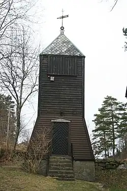 The earliest existing historical records of the church date back to the year 1398, but the church was not built that year. The stone church was likely built during the second half of the 13th century. The church was dedicated to St. Hallvard, and it was known as St. Hallvard's Church for most of its history. The church was built using local stone. It consisted of a nave with a choir in the same room with no dividing wall. The church was built next to a spring that was said to have healing powers, which led many people to make pilgrimages to the church.[3][4][5]