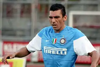 On 16 July 2009, Lúcio moved to Italian club Inter Milan, signing a three-year contract with the Serie A champions.[9] He was given the number 6 shirt. He scored his first goal with Inter on 23 September 2009 against Napoli with a header from a corner kick. Lúcio also scored an own goal in the UEFA Champions League in the group stages against Dynamo Kyiv, resulting in a draw. Throughout the season, both Lúcio and his defensive partner Walter Samuel drew praise for their performances,[10] and on 22 May, Lúcio was in the Inter team that won the Champions League by defeating his former club Bayern Munich 2–0, to seal a historic treble and end a 45-year wait to be crowned European Champions. He was selected In the FIFA FIFPro World XI of 2010 For His Performances[11] On 24 September 2011, Lúcio made his 100th appearance in an Inter shirt, scoring the third of a 3–1 win at Bologna in Serie A matchday 5.[12] On 29 June 2012, it was announced that Lúcio would be leaving Inter following a mutual agreement to terminate the final two years of his contract.[13]