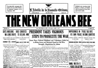 The New Orleans Bee[1] (French: L’Abeille de la Nouvelle-Orléans[2]) was an American broadsheet newspaper in New Orleans, Louisiana, founded on September 1, 1827, by François Delaup and originally located at 94 St. Peter Street, between Royal and Bourbon.[3] The newspaper ceased publication on December 27, 1923.