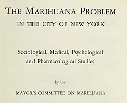 - ^ Mayor LaGuardia's Committee on Marihuana, City of New York (1944). Wallace, George Barclay; Cunningham, Elizabeth V. (eds.). The Marihuana Problem in the City of New York. History of Medicine Series, issued under the auspices of the Library of the New York Academy of Medicine. The New York Academy of Medicine. ISBN 978-0-8108-0629-0.