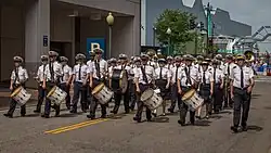The band regularly takes part in the ceremonies given to the highest authorities of state or to foreign people who are of importance. During the national ceremony/military parade on the 14 of July (Bastille Day), the band plays a role in providing music to the marching contingents on the Champs-Élysées.[4] It is integrated into the cultural program of the local Army Museum and is associated with educational projects for young people. The venues it has performed in have included Les Invalides, the Hôtel de Brienne, the Salle Pleyel, the Théâtre des Champs-Élysées, or the Philharmonie de Paris. It has given cultural outreach performances throughout French territory and even at international venues. While visiting Norfolk, Virginia in 2017 to participate in the commemorations of the centenary of the American entry into World War I, the band took part in the Virginia International Tattoo.[1][3]