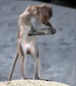 - ^ Malaivijitnond, S.; Lekprayoon C; Tandavanittj N; Panha S; Cheewatham C; Hamada Y. (February 2007). "Stone-tool usage by Thai long-tailed macaques (Macaca fascicularis)". Am J Primatol. 69 (2): 227–33. doi:10.1002/ajp.20342. PMID 17146796. S2CID 24117181.