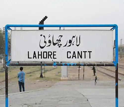 Lahore Cantonment Railway Station (Urdu and Punjabi: لاہور کینٹ ریلوے اسٹیشن) is located in Lahore Cantonment, in Lahore district of Pakistan's Punjab province.[1]