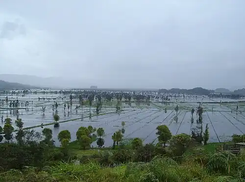 Lake Fúquene is a heart-shaped lake located in the Ubaté-Chiquinquirá Valley, part of the Altiplano Cundiboyacense, in the north of Cundinamarca, Colombia, at the border with Boyacá. The Andean lake, at an average altitude of 2,540 metres (8,330 ft), was considered sacred in the religion of the Muisca who inhabited the area before the Spanish conquest of the Muisca in the 1530s.[4]