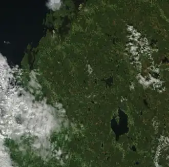 ![]() Lappajärvi is the largest lake near the lower right corner. | |
