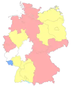 In Baden-Württemberg, Rhineland-Palatinate (southwestern part only), North Rhine-Westphalia (Westphalia), Mecklenburg-Western Pomerania, Brandenburg, Saxony-Anhalt, and Berlin, the Landesliga is the seventh tier, below the Verbandsliga. In the Saarland, the Landesligas are set as the eighth tier.[1][2][3]