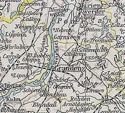 In 1910, the district of Graudenz included the two towns of Lessen and Rehden and 80 rural communities.[4]