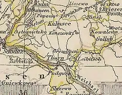 In 1910, the district of Thorn included the two towns of Culmsee and Podgorz and 66 rural communities.[4]