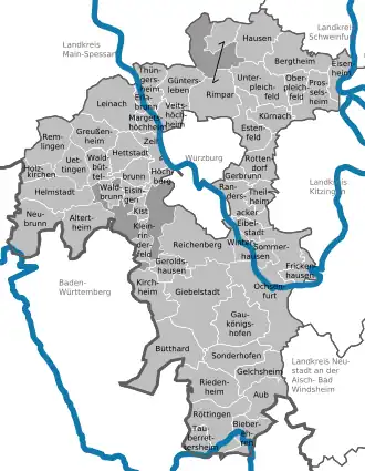 Würzburg is a Landkreis (district) in the northwestern part of Bavaria, Germany. Neighboring districts are (from the north, clockwise) Main-Spessart, Schweinfurt, Kitzingen, Neustadt (Aisch)-Bad Windsheim, and the district Main-Tauber in Baden-Württemberg. The city Würzburg is not part of the district, although it is completely enclosed by it.