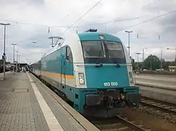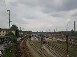 Landshut (Bayern) Hauptbahnhof is the main railway station in Landshut in the German State of Bavaria. There is also the halt (Haltepunkt) of Landshut (Bay) Süd (Landshut south) on the Neumarkt-Sankt Veit – Landshut railway. The Hauptbahnhof has seven platforms tracks and is classified by Deutsche Bahn as a category 2 station.[1] It is used daily by about 120 trains operated by DB Regio, Regentalbahn and Agilis. Landshut is on the Munich–Regensburg, Munich–Landshut–Passau and Landshut–Mühldorf lines. In addition, the station is located on the Landshut Neuhausen museum line.