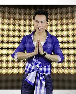 ![]() ![]() Left: A Lao woman wearing traditional clothing in Luang Prabang, Laos Right: A Lao man doing the sabaidee | |