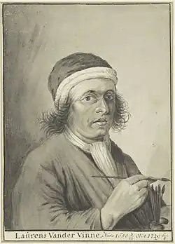 - ^ a b (in Dutch) Laurens van der Vinne Biography in De groote schouburgh der Nederlantsche konstschilders en schilderessen (1718) by Arnold Houbraken, courtesy of the Digital library for Dutch literature