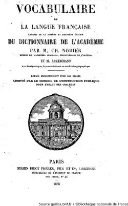 - Dictionnaire de l'Académie française (6th edition), Paris, 1835