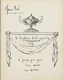 ![]() Cover of the first edition published by Durand Cie (1918), designed by Ravel himself. | |