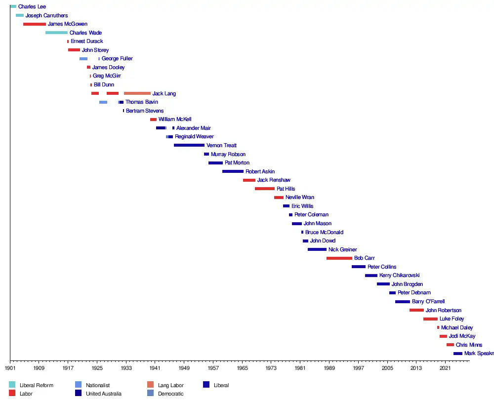- ^ a b "Leaders of the Opposition in the NSW Legislative Assembly, 1901–present". Parliament of New South Wales. Retrieved 28 June 2020.