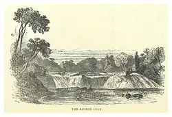 The parish's eponymous "salmon leap" was a 5-metre waterfall on the Liffey, upstream from the village. In 1945, a hydroelectric dam was built on the site[2] and its reservoir flooded the waterfall. The dam generates 4 Megawatts of electricity.[3]
