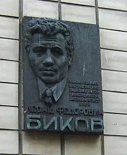 A plaque on the facade of Hovhannes Tumanyan street, 8, Kyiv, where Bykov lived before his death | |