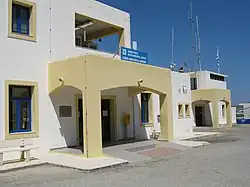 Leros Municipal Airport (Greek: Δημοτικός Αερολιμένας Λέρου, Dimotikós Aeroliménas Lérou) (IATA: LRS, ICAO: LGLE) is an airport serving the island of Leros in Greece. It is also known as Leros Public Airport[2] or Leros Airport. The airport began operations in 1984.[3] The airport is small with limited facilities; there is only a small cafe and a ticket office of the Olympic airlines.[4] With a runway length of just over one kilometer, the airport can only handle small 50-seat aircraft.