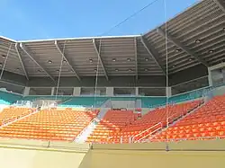 Mayaguez won the 1948–49 championship with a roster that included Canena Marquez and Luke Easter.[23] That same year, the LBPPR joined the Caribbean Series, beginning a rivalry with the Cuban League's champion that lasted throughout the next decade, until Cuba ceased to participate in the event.[24] A decade after its foundation, the league was employing an 80-game schedule. Several new ballparks have been built by the 1949–50 season, this was due to an attendance average of 750,000.[10] Each of the stadiums built surpassed 6,000 seats, with Ponce's Paquito Mountaner reaching 9,718 seats by then.[10] The installation of lights that allowed the organizations of games at night increased attendance. Estadio Sixto Escobar had a maximum capacity of over 15,000, with 13,135 seats.[25] Percucho Cepeda was one of the league's dominant figures during the 1940s, winning two batting championships and a Most Valuable Player award. Natalio Irizarry won the league's Rookie of the Year recognition in 1949–50.[26] From 1949 to 1955, the league featured the participation of new MLB players, including Johnny Logan, Harvey Haddix and Hank Aaron among several others.[27] The players began choosing the league to play due to its competitive level and warm climate during the winter, a custom that has continued until the current decade. Players of the Negro leagues preferred it due to lack of racism towards the players, as opposed to the United States.[28]