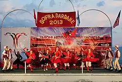 Traditional Albanian clothing, dances, and folklore are showcased in several festivals including the Gjirokastër National Folklore Festival in Gjirokastër;[1] Sofra Dardane every June in Bajram Curri; Oda Dibrane in Peshkopi; Logu I Bjeshkeve every August in Kelmend; Cham Dance Festival in Saranda; and other festivals in various Albanian cities.