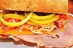 | American sub | | Nationwide | Turkey breast, ham, American or cheddar cheese, chopped or shredded lettuce, tomatoes and onions |