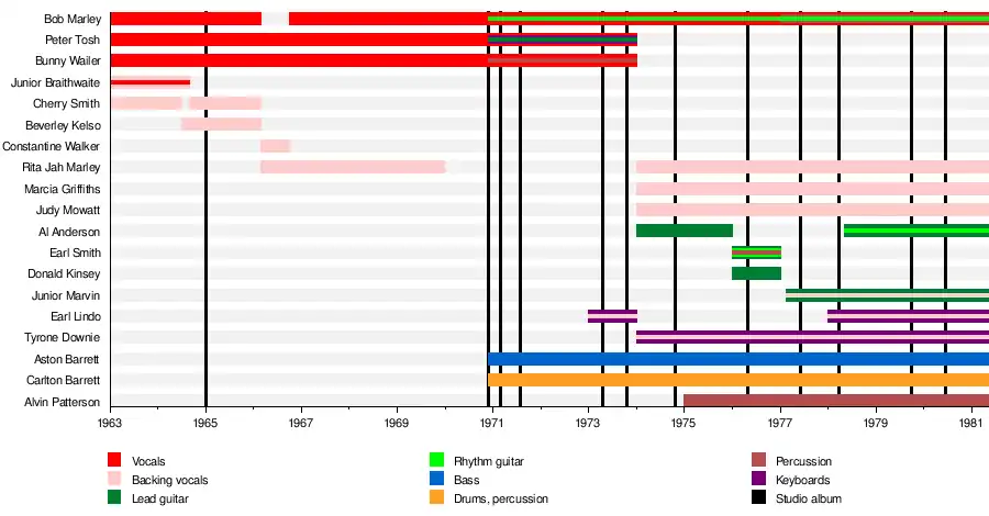 | | Bob Marley | 1963–1981 (until his death) | - vocals