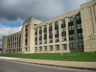 | 126 | Burgard Vocational High School | 368 Kensington Avenue | 11/13/2018 | Not eligible | Burgard Vocational High School was built from 1929 to 1930 and designed in an Art Deco style with Collegiate Gothic elements by Ernest Crimi. | ||