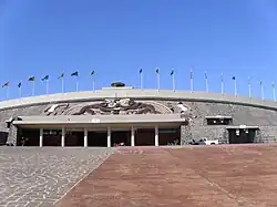 All 1930 FIFA World Cup matches took place in Montevideo. Three stadiums were used: Estadio Centenario, Estadio Pocitos, and Estadio Parque Central. The Estadio Centenario was built both for the tournament and as a celebration of the centenary of Uruguayan independence. Designed by Juan Scasso,[5] it was the primary stadium for the tournament, referred to by Rimet as a "temple of football".[6] With a capacity of 90,000, it was the largest football stadium outside the British Isles.[7] The stadium hosted 10 of the 18 matches, including both semi-finals and the final. However, a rushed construction schedule and delays caused by the rainy season meant the Centenario was not ready for use until five days into the tournament.[8] Early matches were played at smaller stadiums usually used by Montevideo football clubs Nacional and Peñarol, the 20,000 capacity Parque Central and the Pocitos.