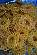 | Jalebi | | Dough fried in a coil shape dipped in sugar syrup, often taken with milk, tea, yogurt, or lassi.[4] | Fried, sugar syrup based |