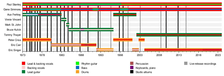 | Paul Stanley (The Starchild) | 1973–2023 |