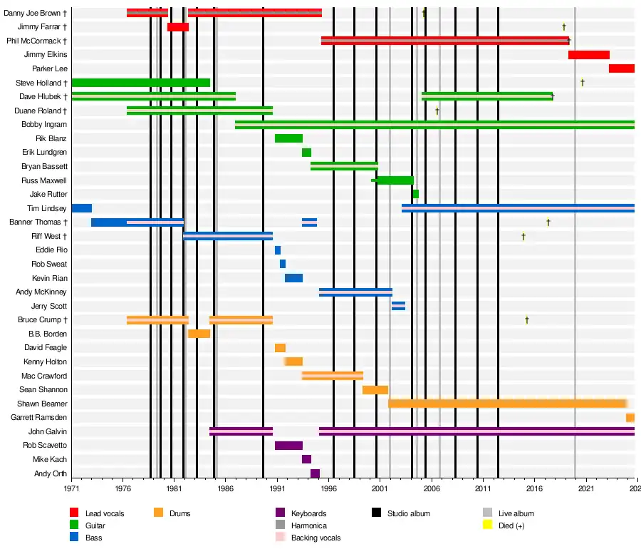 | Greg Talley | 2024 (touring substitutes) | drums | Talley filled in for Beamer in 2024 US gigs.[42] | |