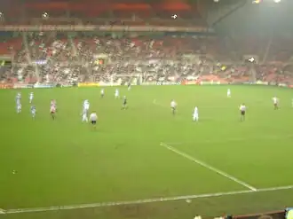 Northwich Victoria Football Club are an English football club based in Northwich, Cheshire. They are currently competing in the Northern Premier League Premier Division.[1] The club was founded in 1874, playing challenge matches organised on an ad hoc basis until the 1877 season, when they entered the Welsh Cup for the first time.[2] The club entered two other competitions (The Cheshire Senior Cup in 1879 and the FA Cup in 1882) before finally playing league football in The Combination in 1890, for which they were founding members.[3] They became founding members of the Football League Second Division in 1892, where the club remained for two seasons, and are the only two seasons in the club's history where they have played professionally and in the English Football League.[4] In the 1894 season, they returned to amateur, regional football when they rejoined the Combination. Two season in the Cheshire League followed until the turn of the century, when Northwich joined the Manchester League in 1900, when they finished as runners-up. Two seasons later, for the first time, they won a league trophy as winners of the Manchester League in 1902.[5] They departed the Manchester League in 1912 when they joined the second division of the Lancashire Combination, finishing 4th in the first season, which ensured their promotion to the first division.[4] In 1919, they became founder members of the Cheshire County League, where they remained until the 1968 season, winning the league just once in the 1956–57 season.[4] Following their departure from the Cheshire County League, they became founder members of the Northern Premier League. In 1979, they founded yet another league, the Alliance Premier League (now known as the Football Conference, where they remained until their relegation in the 2004–05 season. During their time in the Conference, they won the FA Trophy in the 1983–84 season, and finished runners-up twice in 1982 and 1995.[4] They returned to the Conference National at their first attempt when they won the Conference North in the 2005–06 season. However, ongoing financial issues in the latter part of the 2000s saw them relegated twice in two season; in 2009 they were relegated back to the Conference North and then again the following season to the Northern Premier League Premier Division, where they are competing for the current season.[6]