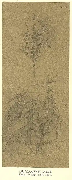 - ^ 74. Лопухи та інші начерки. Тарас Шевченко. Повне зібрання творів в десяти томах. Живопис, графіка 1857-1861. Vol. 10. Kyiv: Видавництво Академії Наук УРСР. 1963.