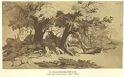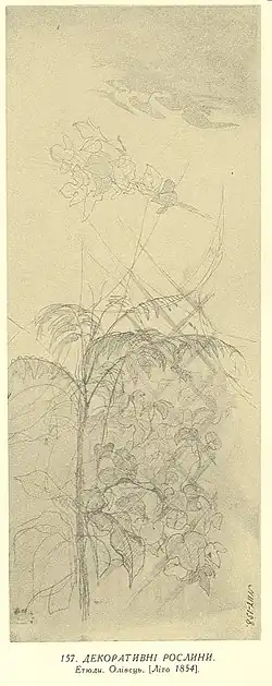 ![]() | Near Sedniv.[89] | Paper, Ink, Sepia, Watercolor | 21.1 × 29.2 | IV 1846 |