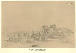 ![]() | Chumaks Among Burial Mounds[90] | Paper, Pencil, Watercolor | 18.5 × 27 | IV 1846 |