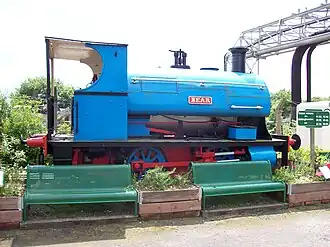 | 614 | Bear | January 1896 | W4 | 0-4-0ST | 4 ft 8+1⁄2 in | Preserved, static exhibit | Buckinghamshire Railway Centre | Built for James Dunlop & Co. (later Colvilles), Clyde Iron Works, Tollcross, Glasgow (No. 2), transferred to Mossend Engineering Works 1941 (as No. 3).[22] It was overhauled by Barclay & Sons in 1941, so is now classed as a hybrid and carries works plates for Peckett on one side and Barclay on the other.[23] It was retired in 1967 and presented to the Locomotive Club of Great Britain (LCGB) by its former owners Messrs Colvilles Ltd of Mossend. In August 1971 it moved from storage at the Scottish Railway Preservation Society at Falkirk to the Sittingbourne and Kemsley Light Railway (SKLR) to whom ownership was transferred in 1996.[24] In 2023, after years of deterioration from being stored in the open air, the SKLR trustees transferred ownership to the Quainton Railway Society. It arrived at the Buckinghamshire Railway Centre in March 2024. The aim is to return the engine to service after restoration.[23] It is the oldest surviving standard-gauge Peckett. | |||
