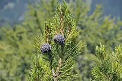 Section Pinus has two or three needles per fascicle. Cones of all species have thick scales, and all except those of P. pinea open at maturity. Species in this section are native to Europe, Asia, and the Mediterranean, except for P. resinosa in northeastern North America and P. tropicalis in western Cuba.[6]