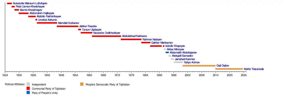 - Jabbor Rasulov (April 1946 – 29 March 1955)