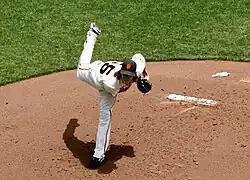 The San Francisco Giants are a Major League Baseball franchise based in San Francisco, California. They moved to San Francisco from New York City in 1958.[1] They play in the National League West division. The first game of the new baseball season for a team is played on Opening Day, and being named the Opening Day starter is an honor, which is often given to the player who is expected to lead the pitching staff that season,[2] though there are various strategic reasons why a team's best pitcher might not start on Opening Day.[3] Through 2016, the Giants have used 30 different Opening Day starting pitchers in their 58 seasons since moving to San Francisco. The 30 starters have a combined Opening Day record of 27 wins, 16 losses and 16 no decisions.[4] No decisions are only awarded to the starting pitcher if the game is won or lost after the starting pitcher has left the game.[5]