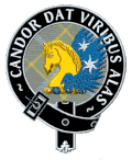 | Cockburn |  | Crest: A cock crowing Proper.[62] Motto: Accendit cantu[63] [Latin, 'He rouses us with song'][62] | Chief: none, armigerous clan | ||