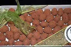 | Teja | confectionery | a popular dumpling-shaped confection that contains manjar blanco filling (similar to dulce de leche) and either dry fruits or nuts. | ||