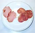 | Cecina | | Castilian-Leonese cuisine Province of León | meat | meat that has been salted and dried by means of air, sun or smoke. |