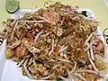| Phat Thai | ผัดไทย | Pad Thai noodles | | Stir fried medium size rice noodles (sen lek) with fish sauce, sugar, lime juice or tamarind pulp, ground peanuts, egg, bean sprouts, and Chinese chives (kuichai), combined with shrimp. | |