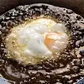 | Khai dao | ไข่ดาว | Fried egg | Literally translated khai dao means "star egg", referring to the star-like shape of the egg after it has been fried. Traditionally the egg is fried in large amounts of hot vegetable oil which produces a crispy outer texture. Khai dao mai suk is a fried egg where the yolk is still runny, the way it is most commonly eaten when served with, for instance, khao phat ("fried rice") or kaphrao mu rat khao ("pork fried with holy basil served with rice"). Fried egg with a (very) hard yolk, khai dao suk (mak), is needed when the fried egg is used for making yam khai dao: fried egg salad. | ||