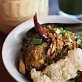 | Thot man pu | ทอดมันปู | Fried crab cakes | Deep fried patties of minced crab meat. Plum sauce is commonly provided. | ||