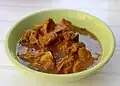 | Kaeng kari | แกงกะหรี่ | Yellow curry | South | It is a Thai-Muslim dish which is mostly known in the West as "Thai yellow curry". It is of Indian origin and is often made with chicken and potatoes. It can also be made with other meats or seafood. | |