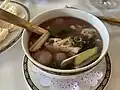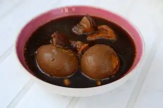 | Kaolao | เกาเหลา | | A soup of Chinese origin, usually containing offal, often pork liver and intestines, also boiled eggs, and other meats such as crispy pork. Alternatively, at regular noodle soup shops, it can also be as a regular Thai-Chinese noodle soup but then served without any noodles. | ||